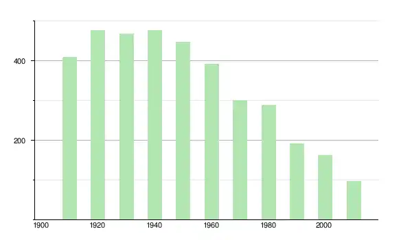 | 1950 | 448 | ▼ −5,88 % | |