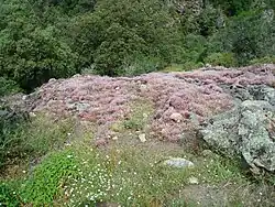 - l’orpin bleuâtre (Sedum dasyphyllum), aussi appelé « herbe de l’Ascension », pousse sur les rochers, très vivace peut vivre sans terre ni eau.