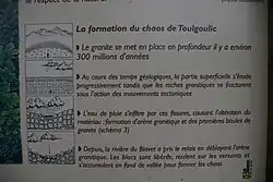 Le chaos est traversé par le Blavet. Il est constitué de roches granitiques qui datent d'environ 300 millions d'années qui se sont fracturées sous l'action de mouvements tectoniques au fil des temps géologiques et dont la partie superficielle s'est érodée progressivement sous l'action de l'eau qui s'est infiltrée progressivement dans les fissures, entrainant la formation d'arène granitique le long de celles-ci. Le Blavet a ensuite, à l'emplacement de son cours, érodé cette arène granitique, laissant en place le granite non altéré sous forme de boules qui, roulant le long des versants, se sont accumulées au fond de son lit, entraînant la formation du chaos granitique.