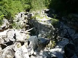 L'entrée des gorges du Fier vue depuis les passerelles. | |||