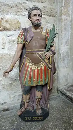 Plusieurs communes françaises portent le nom de Saint-Gorgon[2]. Des églises lui ont été consacrées, comme à Metz, à Moyeuvre-Grande, à Varangéville (Meurthe-et-Moselle), à Plovan (Finistère), à Moustoir-Remungol (Morbihan), à Véron (Yonne), à Woël (Meuse) ou l'église de Pouillon dans la Marne.