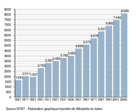 - ↑ (it) Popolazione residente e bilancio demografico sur le site de l'ISTAT.