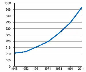 - 1 2 (sq) « Évolution de la population 1948-2011 », sur pop-stat.mashke.org (consulté le ).