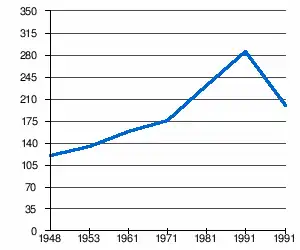 - 1 2 (sq) « Évolution de la population 1948-2011 », sur pop-stat.mashke.org (consulté le ).