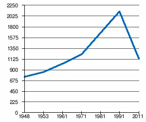- 1 2 (sq) « Évolution de la population 1948-2011 », sur pop-stat.mashke.org (consulté le ).