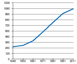 - 1 2 (sq) « Évolution de la population 1948-2011 », sur pop-stat.mashke.org (consulté le ).