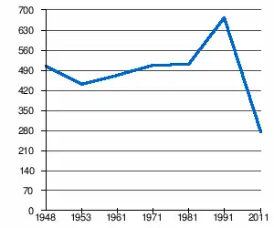 - 1 2 (sq) « Évolution de la population 1948-2011 », sur pop-stat.mashke.org (consulté le ).