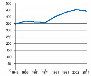 | 345 | 367 | 361 | 358 | 404 | 433 | 454[2] | 441[1] |
