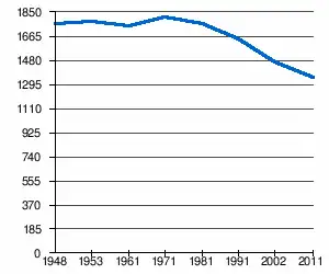 - 1 2 (sr + en) « Livre 20 : Vue d'ensemble comparative de la population en 1948, 1953, 1961, 1971, 1981, 1991, 2002 et 2011, données par localités) » [PDF], pages du recensement de 2011 en Serbie - Institut de statistique de la république de Serbie, (consulté le )