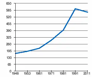 - 1 2 (sq) « Évolution de la population 1948-2011 », sur pop-stat.mashke.org (consulté le ).