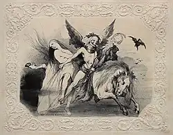 Bürger est un des poètes allemands dont la réputation s’est le plus répandue à l’étranger. Au lieu de s’enfermer dans l’école de poésie nationale qui prenait Klopstock pour modèle, il chercha à se rapprocher de Wieland, en modifiant les données exclusives des anciennes traditions germaniques par la libre mise en œuvre de tous les sentiments humains, et en admettant dans la versification allemande tous les éléments de rythme et d’harmonie propres aux langues modernes au point qu’on lui a quelquefois reproché, en son temps, d’avoir abaissé sa poésie à la vulgarité pour la rendre plus populaire. Les œuvres les plus remarquables de Bürger sont ses Ballades, dont les principales ont été traduites ou imitées dans toutes les langues et mises en musique par des compositeurs célèbres. Suivant Germaine de Staël qui, la première, en a donné de saisissantes analyses, « Bürger est de tous les Allemands celui qui a le mieux saisi cette veine de superstition qui conduit si loin dans le fond du cœur[2]. » Lénore, traduite par Gérard de Nerval en 1830, et Le Chasseur sauvage (Der wilde Jäger) produisent au plus haut point cette émotion superstitieuse, dont la raison ne peut nous défendre entièrement. Dans la première, la révolte d’une jeune fille contre la douleur et la Providence qui la lui envoie, est punie d’une façon terrible lorsque la terre l’engloutit dans les bras du squelette de l’amant qu’elle accusait le ciel de lui avoir ravi. Un indicible effroi sort de cette poésie ; on sent dans toute l’histoire, suivant l’expression de Germaine de Staël, quelque chose de funeste, et l’âme est constamment ébranlée. Il règne d’un bout à l’autre des trente-deux strophes de huit vers de la ballade de Lénore une rapidité vertigineuse ; les objets paraissent et fuient, les sentiments se précipitent, la catastrophe arrive en toute hâte et éclate formidable. Au terrible refrain « Hurra ! die Todten reiten schnell ! » (Les morts vont vite !) répond ce cri de douleur de la fiancée : « O weh ! lass ruhe die Todten ! » (De grâce, laisse en paix les morts !)