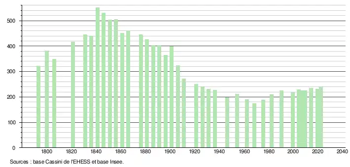 - ↑ Fiches Insee - Populations de référence de la commune pour les années 2006, 2007, 2008, 2009, 2010, 2011, 2012, 2013, 2014, 2015, 2016, 2017, 2018, 2019, 2020, 2021 et 2022.