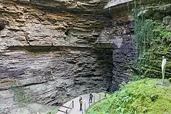 Parois rocheuses encadrant le cheminement des visiteurs.