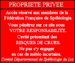 - ↑ Jean Taisne, Contribution à un inventaire spéléologique du Département du Lot : coordonnées et situation de plus de 1300 cavités, Labastide-Murat, Comité Départemental de Spéléologie du Lot (CDS46), , 365 p. (ISBN 2-9509260-1-0), p. 87