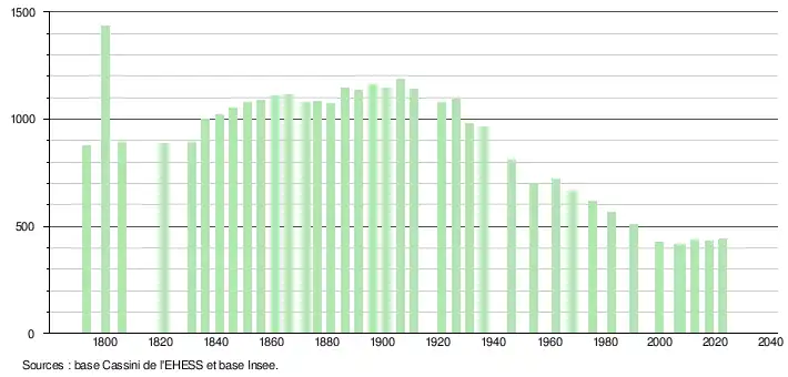 - ↑ Fiches Insee - Populations de référence de la commune pour les années 2006, 2007, 2008, 2009, 2010, 2011, 2012, 2013, 2014, 2015, 2016, 2017, 2018, 2019, 2020, 2021 et 2022.