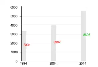 Le nombre d'habitants du village est incertain, variant selon les sources de 3987 à plus de 5000. L'annexe a une population de plus de 15 000 habitants