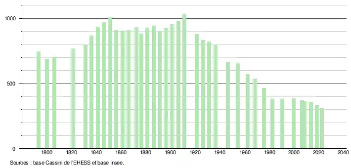 - ↑ Fiches Insee - Populations de référence de la commune pour les années 2006, 2007, 2008, 2009, 2010, 2011, 2012, 2013, 2014, 2015, 2016, 2017, 2018, 2019, 2020, 2021 et 2022.