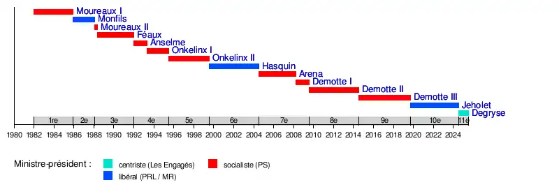 | 9e législature | Gouvernement Demotte III | - (5 ans, 1 mois et 26 jours) |