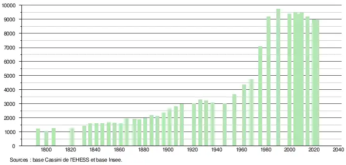 - ↑ Population municipale de référence en vigueur au 1er janvier 2025, millésimée 2022, définie dans les limites territoriales en vigueur au 1er janvier 2024, date de référence statistique : 1er janvier 2022.