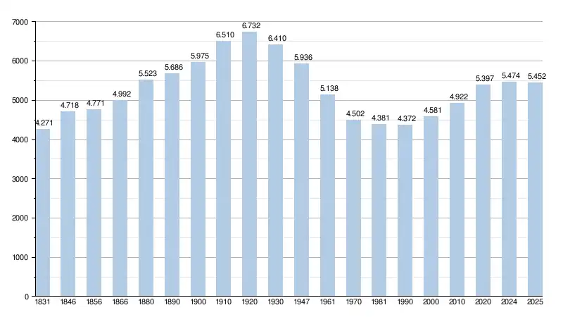 - Source: DGS , de 1831 à 1981=recensements population; à partir de 1990 = nombre d'habitants chaque 1 janvier[9]