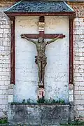 - À l'extérieur, sur le mur nord, se trouve un christ en chêne, sculpté par Pfaffenhofen, auteur des boiseries de Valloires. Il fut sauvé pendant la Révolution française par un sieur Grevet qui fut enterré dessous[44].