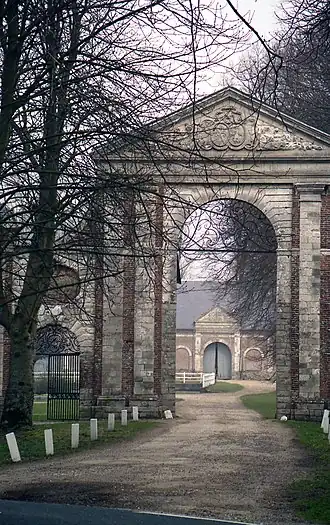 - Le portail principal supporte un fronton triangulaire aux armes de l'abbaye et de l'évêque d'Amiens, il constitue, avec les bâtiments bas l'encadrant, un modèle architectural de cette époque.