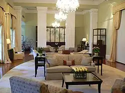La salle de dessin est utilisée pour recevoir des invités et tenir des réunions. Ses murs et plafonds sont ornés de moulures en plâtre raffinées.