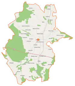 La gmina couvre une superficie de 218,93 km2 pour une population de 8 756 habitants[1] en 2006.