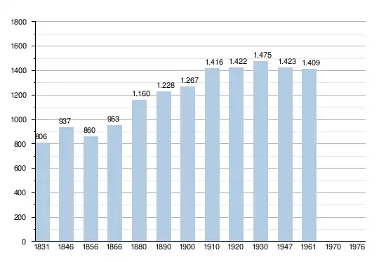 • Sources : INS, Rem. : 1831 jusqu'en 1970 = recensements, 1976= nombre d'habitants au 31 décembre[5].