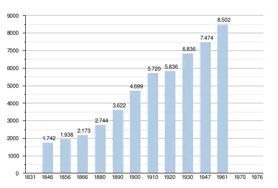 - Sources : INS, Rem. : 1831 jusqu'en 1970 = recensements, 1976 = nombre d'habitants au 31 décembre.