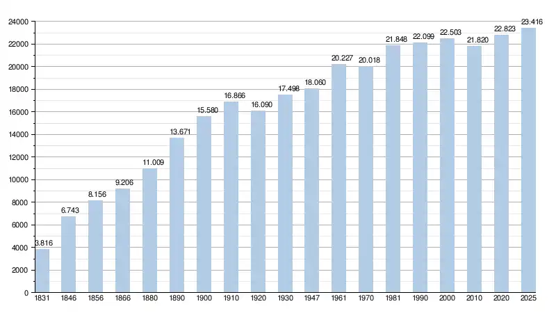 - Source: DGS , de 1831 à 1981=recensements population; à partir de 1990 = nombre d'habitants chaque 1 janvier[2]