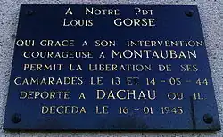 - Ernest, Louis, Antoine Gorse, né le à Grèzes, mort en déportation au camp de concentration de Dachau le [37], dirigeait la scierie portant son nom. Il permit la libération d'hommes à Montauban les 13 et . Il fut déporté dans le train de la mort 7 909 qui partit de Compiègne le et arriva au KL Dachau le . Enregistré sous le matricule 76 887, il est mort dans ce camp de concentration le [38].