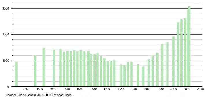 - ↑ Fiches Insee - Populations de référence de la commune pour les années 2006, 2007, 2008, 2009, 2010, 2011, 2012, 2013, 2014, 2015, 2016, 2017, 2018, 2019, 2020, 2021 et 2022.