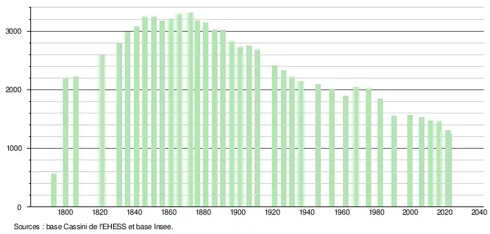 - ↑ Fiches Insee - Populations de référence de la commune pour les années 2006, 2007, 2008, 2009, 2010, 2011, 2012, 2013, 2014, 2015, 2016, 2017, 2018, 2019, 2020, 2021 et 2022.