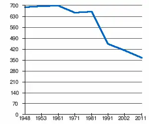 - 1 2 (sr + en) « Livre 20 : Vue d'ensemble comparative de la population en 1948, 1953, 1961, 1971, 1981, 1991, 2002 et 2011, données par localités) » [PDF], pages du recensement de 2011 en Serbie - Institut de statistique de la république de Serbie, (consulté le )