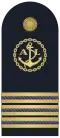 | Ammiraglio | Ammiraglio di squadra con incarichi speciali | Ammiraglio di squadra | Ammiraglio di divisione | Contrammiraglio | Capitano di vascello | Capitano di fregata | Capitano di corvetta |