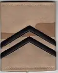 ↑ Le caporal de corps tient alors le même rôle que l'«adjudant de corps», en étant le chef du personnel de sa catégorie; lors des parades, il occupe, avec le «chef de corps» et l'«adjudant de corps», la tête du dispositif en ordre serré —Drill— qui est alors appelé la «triplette»; il fait partie de la chaine de commandement au niveau du «corps» qui l'occupe.