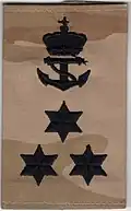 Selon les composantes et les différentes tenues —il en existe trois: de cérémonie, de sortie ou de travail, de combat ou de campagne[2]— les insignes de grades se portent en divers endroits: au milieu de la poitrine, sur les épaules, aux poignets,etc.