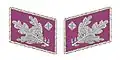 L'insigne de col droit indique le numéro et le type d'unité (ascendant jusqu'à “Obersturmbannführer” (OF4) dans la SA et la SS, et “Oberstaffelführer” (OF4) dans la NSMC) : L'insigne de col gauche indique l'insigne de grade (ascendant jusqu'à “Standartenführer” (OF5) des deux côtés).