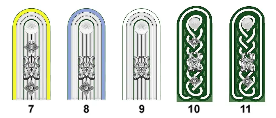 9. Major ; 10. Oberstleutant ; 11. Oberst ; 12. Generalmajor ;