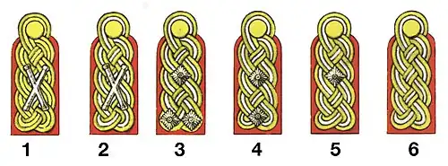 - carmin : fonctionnaires d'état-major ;