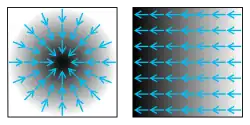 - Le gradient est un vecteur de même dimension que l'espace sur lequel porte la température (ici ℝ3), alors que la température est à valeurs scalaires (c.-à-d. que la température en un point est un nombre, pas un vecteur).