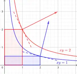 On peut donner un statut mathématique précis aux notations dx et dy (qui sont des formes différentielles), et à la quantité dx dy (qui est alors du second ordre). Le calcul précédent est en fait un calcul de développement limité à l'ordre 1, faisant intervenir les dérivées premières de la fonction xy par rapport à ses deux variables. En négligeant dx dy, on obtient donc :