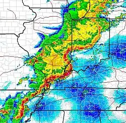 - ↑ (en) Bureau de Louisville, KY, « Structure and Evolution of Squall Lines and Bow Echoes Convection Systems », National Weather Service (consulté le )