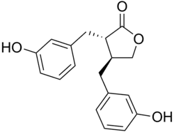 Les lignanes sont un groupe de composés constitués de dimères d'unités phénylpropane. Chez les mammifères, la fermentation des lignanes alimentaires par le microbiote intestinal produits de l’entérolactone et de l’entérodiol. En particulier, il a été montré que la sésamine, le lignane principale de l’huile de sésame, est convertie en entérolactone, entérodiol et trois autres métabolites intermédiaires après 24 h de fermentation in vitro avec le microbiote intestinal humain. On peut observer l’augmentation de la concentration de ces molécules dans le plasma après consommation d’une seule dose de graines de sésame[9].