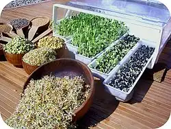 - Cet article est partiellement ou en totalité issu de la page « Graines germées » de fr.ekopedia.org, le texte ayant été placé par l’auteur ou le responsable de publication sous la licence Creative Commons paternité partage à l'identique ou une licence compatible. (voir la liste des auteurs) (voir aussi la page de discussion)