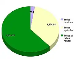 La répartition des sols de la commune est la suivante[19] (donnée pour un total de) :
