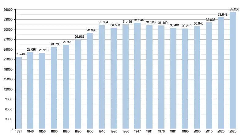 - Source : DGS - Remarque : 1831 jusqu'à 1981 = recensement ; depuis 1990 = nombre d'habitants chaque 1er janvier[2]