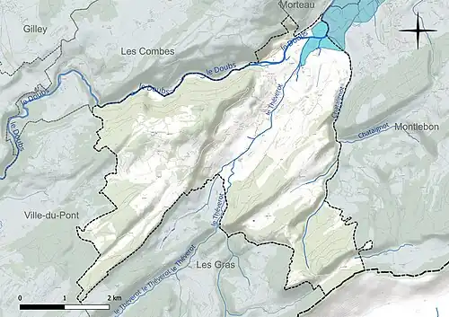 Les communes limitrophes sont Montlebon, Les Combes, Les Gras, La Brévine, Le Cerneux-Péquignot, Morteau et Pays-de-Montbenoît.