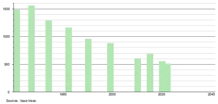 - ↑ Population municipale de référence en vigueur au 1er janvier 2025, millésimée 2022, définie dans les limites territoriales en vigueur au 1er janvier 2024, date de référence statistique : 1er janvier 2022.